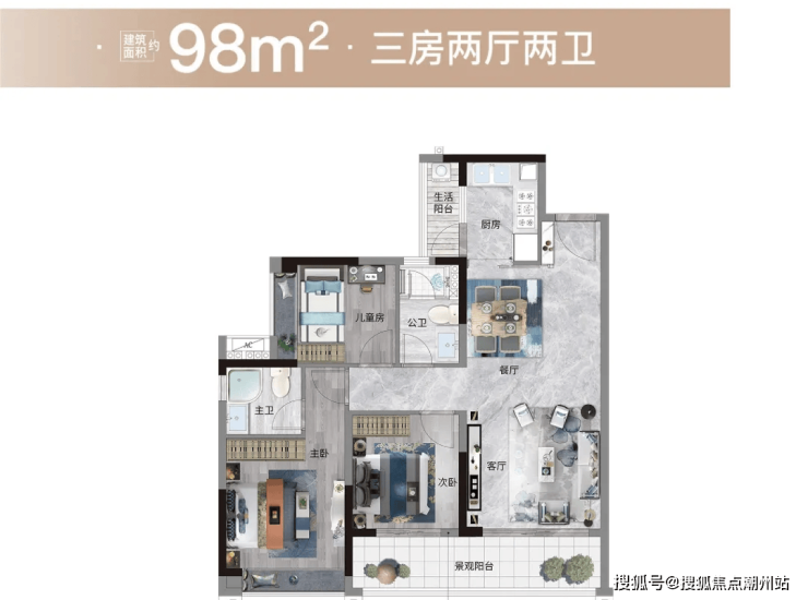 项目首推8/9栋,户型包括建面约98-143平三至五房,尺度感更令人拍手叫绝。像是98平三房,光是阳台宽度,就达到约6.5米!要知道,广州市场上大部分超过6米的阳台,仅存在于120平以上户型。