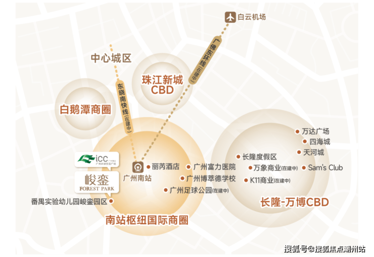 规划理念:全球第五座ICC,对标香港环球贸易广场(香港ICC),采取“东商务、西交通”总体布局,集顶级商场、五星级酒店、甲级写字楼、高端住宅、星级服务式公寓及公共交通设施于一体的全业态综合体