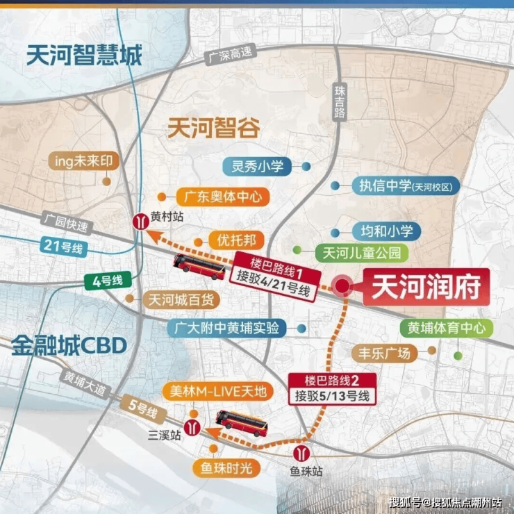 华润天河润府位于天河智谷片区奥体东牛奶厂板块,严格来讲属于吉山板块,紧靠黄埔,紧挨着广园快速旁,背靠天河智慧城和金融城,正处广州科技中轴的天河中央科创区(CTD),与珠江新城、金融城中央商务区(CBD)双核驱动区域发展,金融、科技两大王牌引领区域打造湾区人才高地。