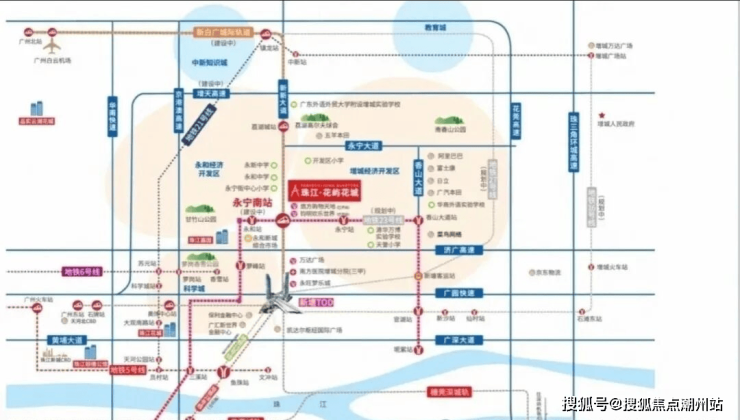 交通配套永宁板块目前没有地铁。交通出行主要依靠自驾或者公交。花莞高速。(宁西互通口距离项目7公里)联通花都东莞 40分钟抵达白云机场 20分钟速达东莞。增天高速,(黄岭互通口距离项目9公里)串联增城天河 30分钟速达天河。济广高速,(新新大道入口距离项目9公里)实现半小时到科学城 一小时抵达天河。新白广城轨(开发区站距离项目4公里)串联新塘TOD 半小时湾区核心城市,目前施工中。