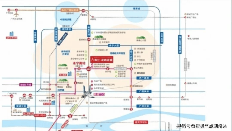 交通配套永宁板块目前没有地铁。交通出行主要依靠自驾或者公交。花莞高速。(宁西互通口距离项目7公里)联通花都东莞 40分钟抵达白云机场 20分钟速达东莞。增天高速,(黄岭互通口距离项目9公里)串联增城天河 30分钟速达天河。济广高速,(新新大道入口距离项目9公里)实现半小时到科学城 一小时抵达天河。新白广城轨(开发区站距离项目4公里)串联新塘TOD 半小时湾区核心城市,目前施工中。