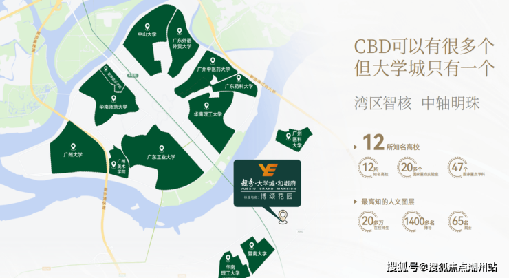 越秀大学城和樾府项目位于国际创新城板块,就在暨南大学番禺校区的北面,项目周边坐拥13所高校,涵盖多所985、211大学,而且周边科创产业也非常多,随着大学城二期的开发,加上交通教育等配套的完善,整个片区发展都进入一体化时代,南大干线的开通,从项目开车去万博、南站都非常方便,通过金光东隧道去大学城一期也很方便、坐地铁4号线五个站就可以到琶洲,而且项目还配有一所九年一贯制学校,预计今年就能开学。