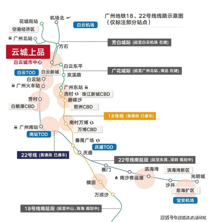 交通极其便利:位于在建的白云城市中心站上盖,汇聚 18 号线、22 号线等高速地铁线,3 站可到达天河北,4 站能抵达珠江新城,半小时直达市中心,一小时内畅行大湾区,且规划有专属归家通道,与地铁站厅无缝衔接。