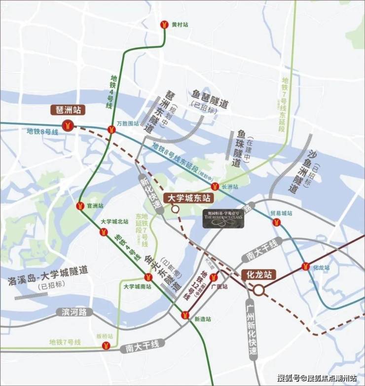 城轨两站即达琶洲 多轨道隧道集中兑现,4轨道环绕,两站即达琶洲,4道路通勤,15公里达珠江新城。