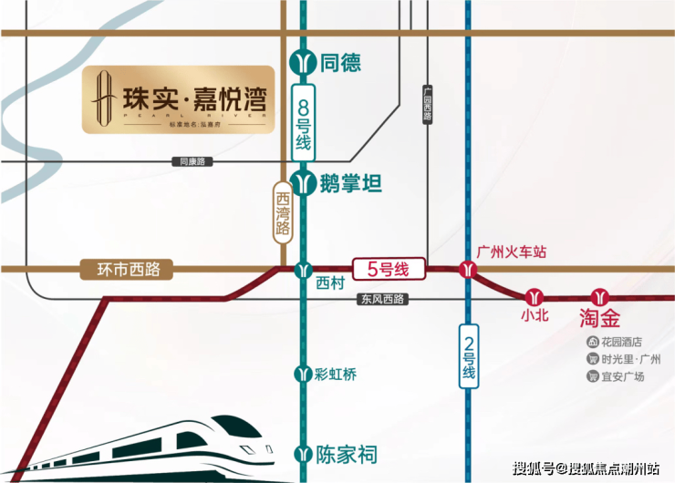交通方面:地铁8号线同德站/鹅掌坦站距项目仅约 600米(直线距离),一站荔湾,两站越秀,三站陈家祠,四站淘金。通过鹅掌坦站可一站换乘5号线西村站,八站到珠江新城,满城繁华随时开启。