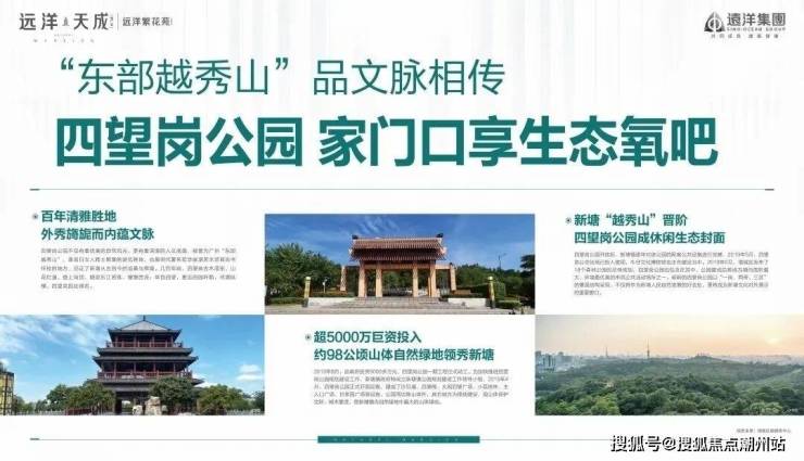 毗邻新塘最大的市民公园, 有东部“越秀山”之称的四望岗公园,公园占地约1470亩, 是当之无愧的天然大氧吧。未来,小区附近将会规划一条小路直达四望岗公园,轻松登顶即可远眺东江,四望新塘,充分享受“城市绿境”带来的舒适生活。