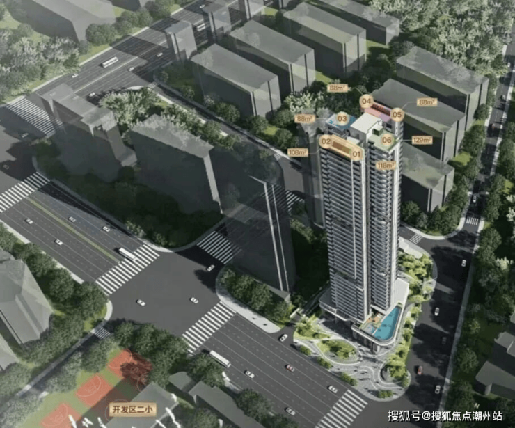 整个项目只有1栋楼,共41层高,3梯6户,做了88平三房,108/118平小四房,以及129平横厅大四房4个面积段产品