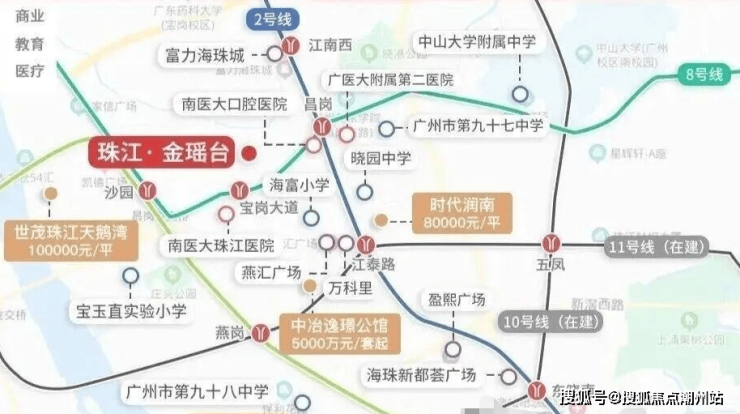 教育资源:项目对面即为广州市江南外国语学校(省一级),周边2公里内昌岗中路小学、广州市第五中学、广州市南武中学等多所省级名校环伺;