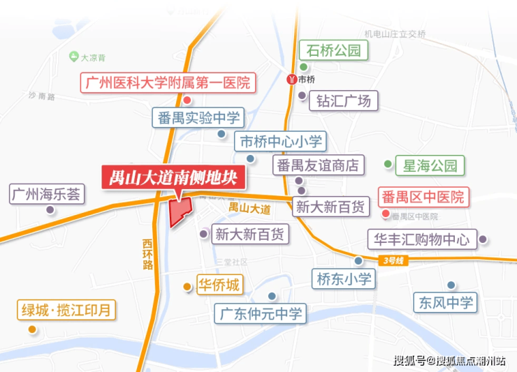 由于项目地块比较小,并没有配建学校,小学和初中只能附近统筹,不过周边名校还是比较多的,省一级的小学有南阳里学校、市桥中心小学、北城小学,初中有广东仲元中学、番禺实验中学这些都是市桥板块第一梯队的学校,但是目前还没确定对口那间学校。