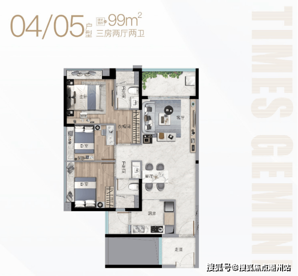 产品:建面约56-107㎡奢装二至三房