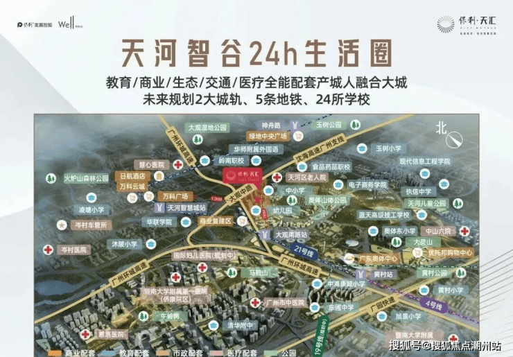 保利天汇距离地铁21号线大观南路站约1.2公里,步行约20分钟,可1站换乘4号线,直达金融城、琶洲,4站到员村换乘5号线,快速接驳珠江新城。另外,未来规划中的19号线、37号线或将交汇于此,但落地尚需时日,因此短期内公共交通的便利性仍有不足。