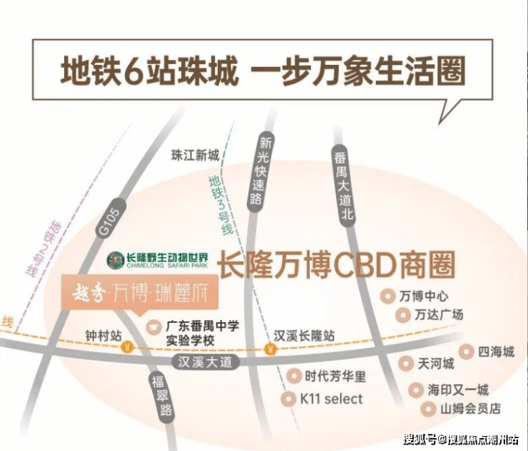 交通配套:公共交通方面,离小区最近的地铁站是7号线钟村站,步行距离大概在1.2公里,步行时常需要15分钟左右,这个时间和距离也不是不能接受,只是目前沿途道路尚在改造中,步行体验欠佳。坐地铁2站万博,3站到广州南站,6站可到珠江新城 。自驾的话,家门口钟顺路连接汉溪大道、南大干线(已开通),双动脉横贯番禺核心,约10分钟长隆万博CBD,约30分钟珠江新城。
