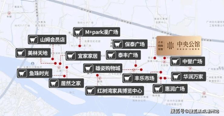 周边有三大成熟商圈环绕,即享惠润广场、沃尔玛等商业配套,5公里范围内就能到三溪美林天地、保利鱼珠时光、山姆会员店、居然之家、M-PARK漫广场等大型商业配套