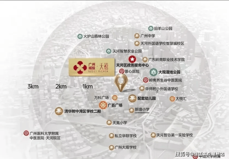项目位于天河智慧城核心区域,广州第三经济发展中轴核心,拥有国家级高新区和省级高新区,并被授予国家产业基地等7个国家级和5个省级创新发展平台,与珠江新城CBD共同构成“一区双核”的发展格局,将成为广州新的经济增长极。