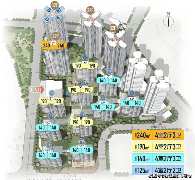 梯数比:2梯2户/2梯3户板楼、2梯4户塔楼