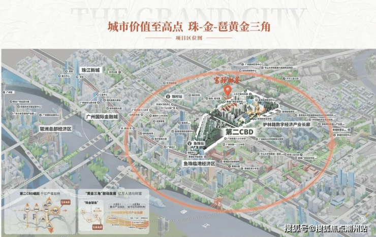项目地处“珠-金-琶-鱼”珠江黄金8公里内,在广州第二CBD,崛起“下一座珠江新城”。第二CBD占地面积达59平方公里,相当于10个珠江新城,由国际金融城、临港经济区、琶洲形成黄金三角区,是广州发展前景最为广阔的区域,具有无与伦比的地段价值。项目一路之隔即为护林路高新产业带,在建中科院空天信息研究院、鱼珠智创绿谷等产业规划,其中广东粤港澳大湾区国家纳米科技创新中心已正式入驻,未来资金、人才将汇聚于此,物业增值潜力无限。