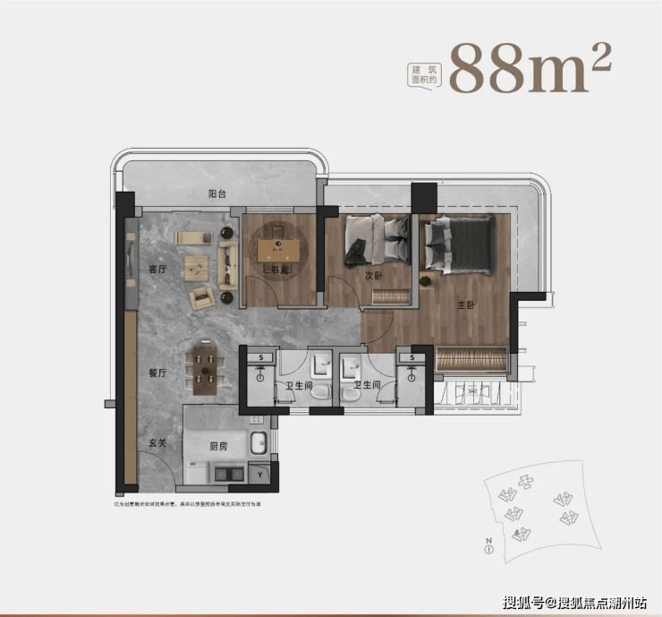 88㎡-约5.7M巨幕阳台 | 270°环幕瞰景主卧|LDKB一体化设计