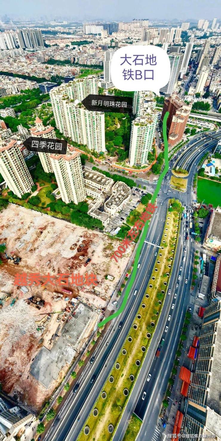 地铁交通方面,步行大概700米到3号线大石站B口,1站万博,6站直达珠江新城。另外还有广州城际大石东站,2站琶洲、3站金融城,与3号线双轨交汇。临近26号线群贤路站(规划中,首次环评已通过),5站客村,6站珠城,与3号线平行有效分流通勤。