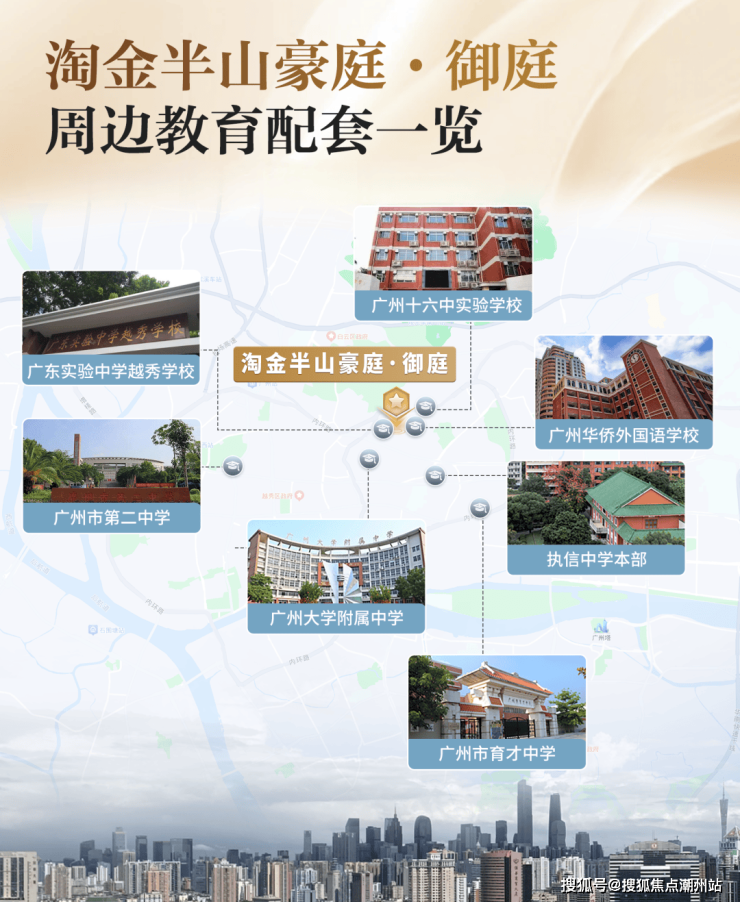 教育配套淘金半山豪庭小区自有配套广州首间公办九年一贯制外语特色学校—【广州市华侨外国语学校】就在家门口!根据最新数据显示, 广州华侨外国语学校小升初比例高达约56%,学校中考成绩卓越不凡,连续14年居于越秀区辖公办学校之首。并且,越秀区小升初电脑派位分组中,汇聚3间市属省级重点中学( 执信中学、广州二中、广大附中)、 3间区属省一级中学( 培正中学、 十七中、省实越秀中学),共12间重点优质公办学校,是越秀区小升初派位组别中的至优配置!