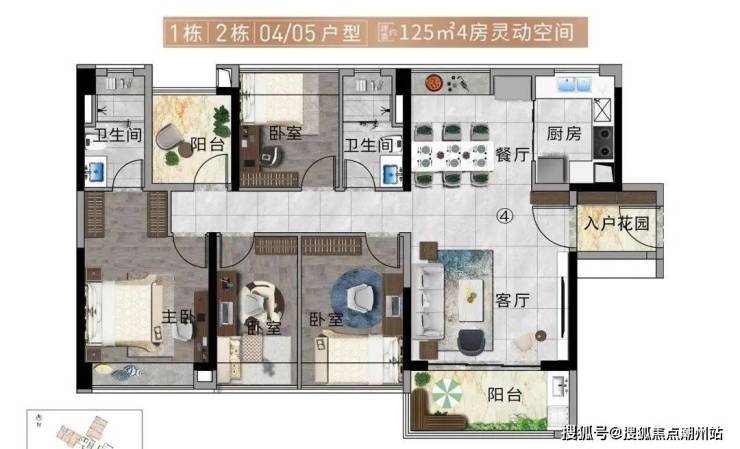 建面约125㎡单位,多开间朝南+南北对流设计,能容纳足够多的朝阳、和风。运用LDK客餐厅一体设计,在阔绰餐客厅中,妈妈在厨房烹饪,孩子在客厅玩耍,爸爸在阳台看书,一个转身回眸,就可看见彼此,亲密无间。