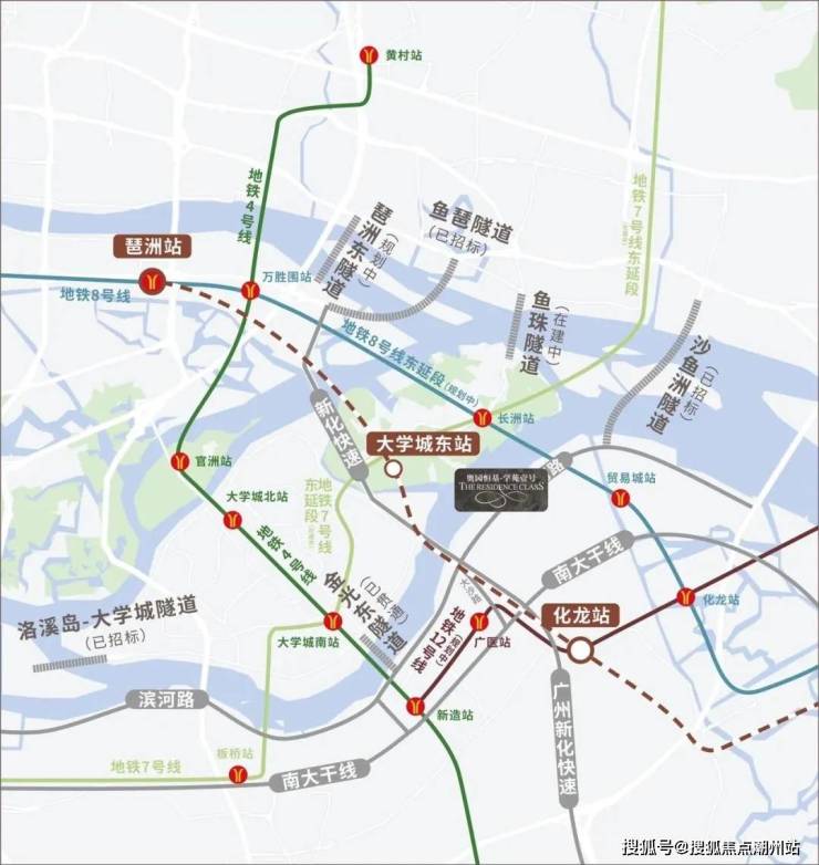 城轨两站即达琶洲 多轨道隧道集中兑现,4轨道环绕,两站即达琶洲,4道路通勤,15公里达珠江新城。