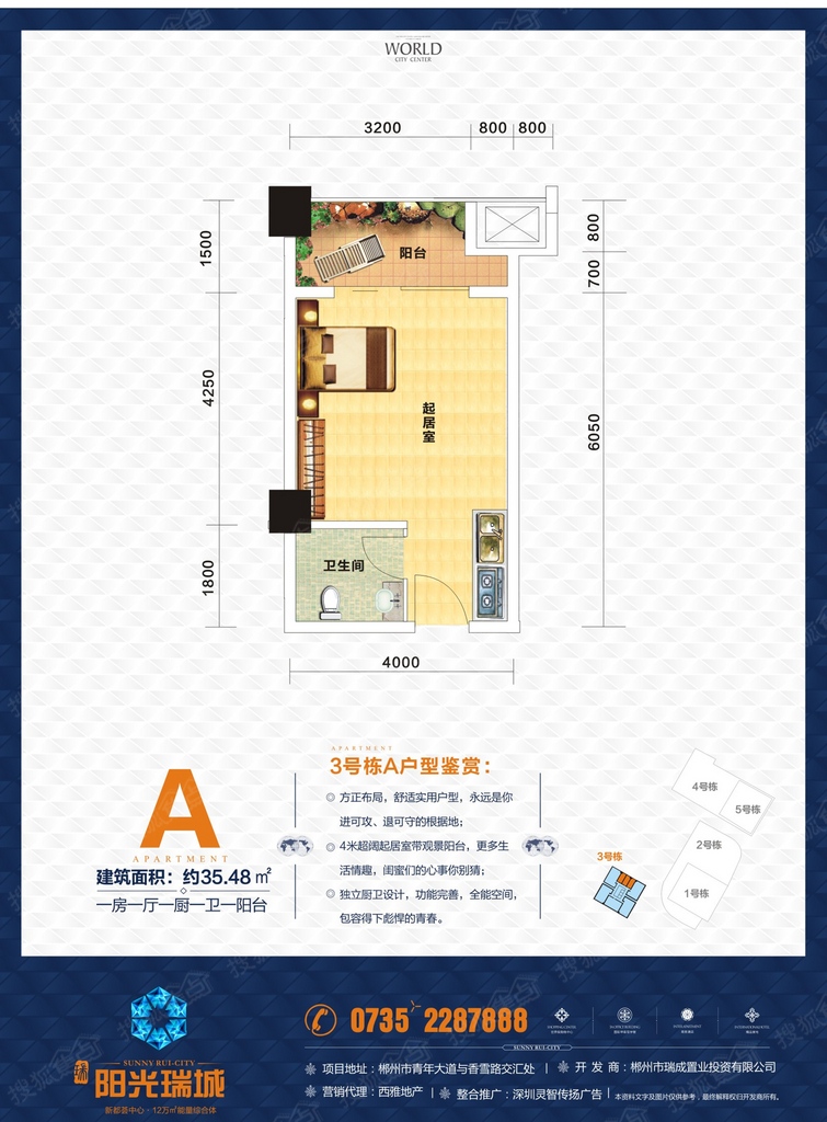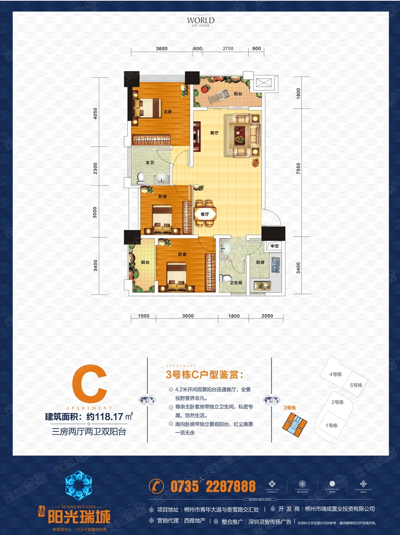 阳光瑞城,于郴州老城与新城交汇核心,站在世界高点,掌握一城财富核心,缔造由商业步行街、大型商超、专业甲级写字楼、商务酒店、铂金公寓、精品美宅组成的约12万㎡能量综合体,到京珠高速、五岭广场、高铁站5分钟都市生活圈,到资兴、永兴、桂阳、宜章半小时经济圈,引领一种包罗万象的一站式全能量生活方式,将为郴州未来的商务、商业发展格局带来一种全新改变。