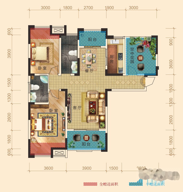2室2厅2卫-116平方,二房二厅二卫双阳台