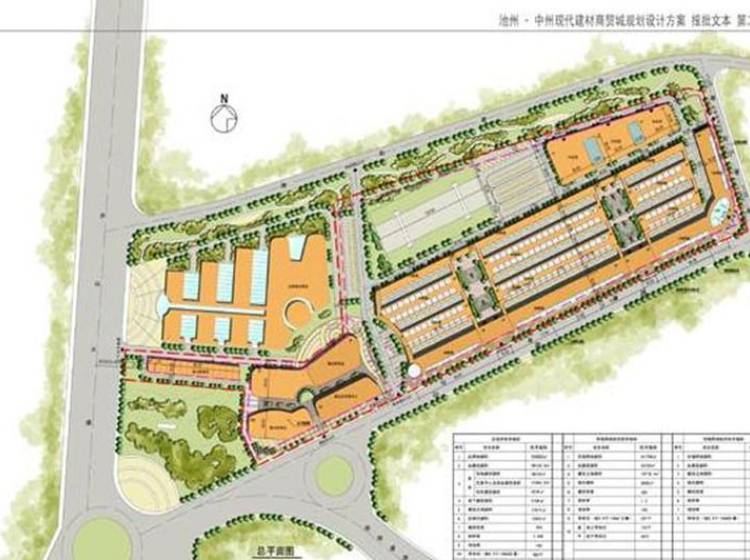 沿齐山大道一条城市景观带,一条东西向主轴以及商贸城规划包括汽车展示交易中心,汽车零配件销售区、汽车美容和综合服务区、建材销售及配送区。