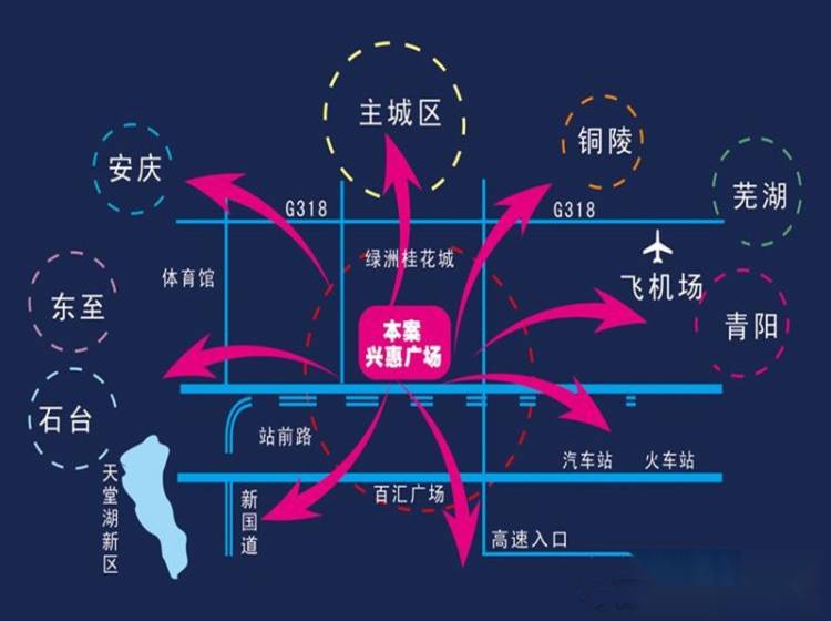 兴惠广场由安徽省池州市兴济惠亚置业有限公司投资开发,项目总占地面积52510平方米,总建筑面积115000平方米,其中商业约7.1万平方,SOHO公寓及办公4.4万方,是集购物、餐饮、娱乐、休闲、商务、居住等多业态于一体的大型商业项目。兴惠广场雄踞池州市火车站站前区商圈财富中轴,周边浓郁的商业氛围、便捷的交通、完备的设施配套、中高档住宅组团的开发,处处彰显出兴惠广场的核心价值。毗邻的天堂湖新区作为全国第八个,安徽省一个国家绿色生态示范城区。依托天堂湖新区的开发,必将前景无限!
