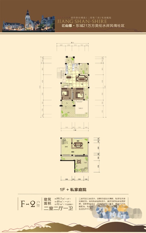 2室2厅1卫-户型一期1F+私家庭院F-2户型
