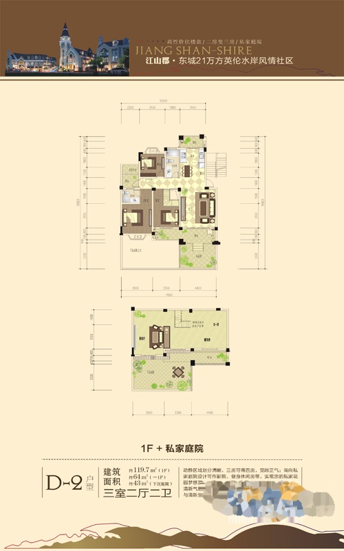 3室2厅2卫-户型一期1F+私家庭院D-2户型