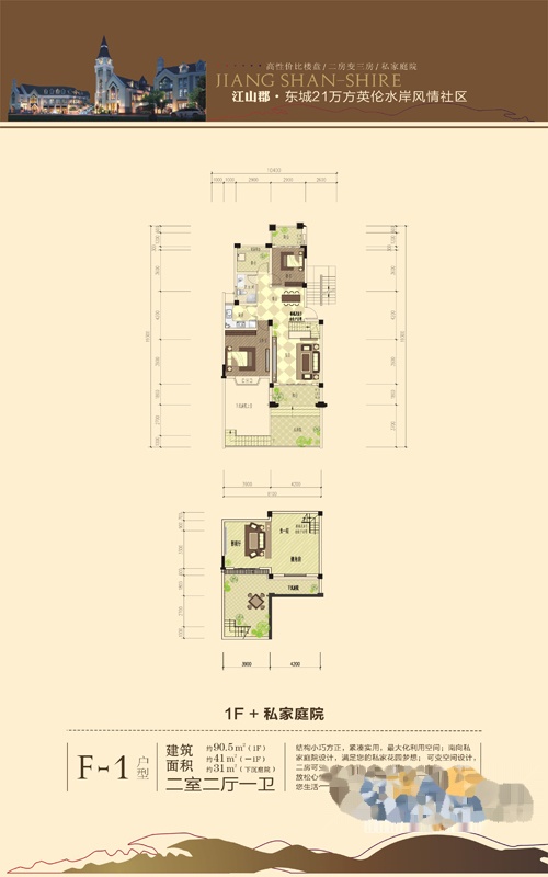 2室2厅1卫-户型一期1F+私家庭院F-1户型