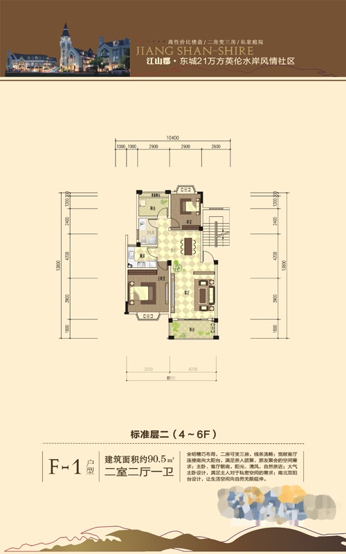2室2厅1卫-户型一期标准层二(4~6F)F-1户型