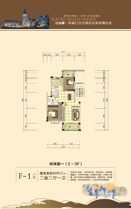 2室2厅1卫-户型一期标准层一(2~3F)F-1户型