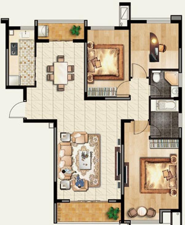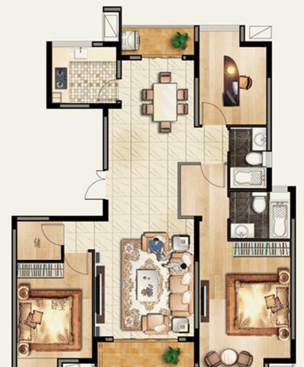 小区建筑采取南低北高的总体布局,南侧以10层、11层小高层为主,北侧以18层为主,在中心绿地错落穿插16层高层住宅,建筑布局户户向景,推窗见绿