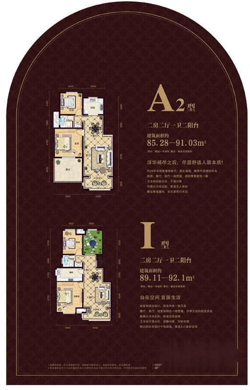 2室2厅1卫-户型A2、I户型