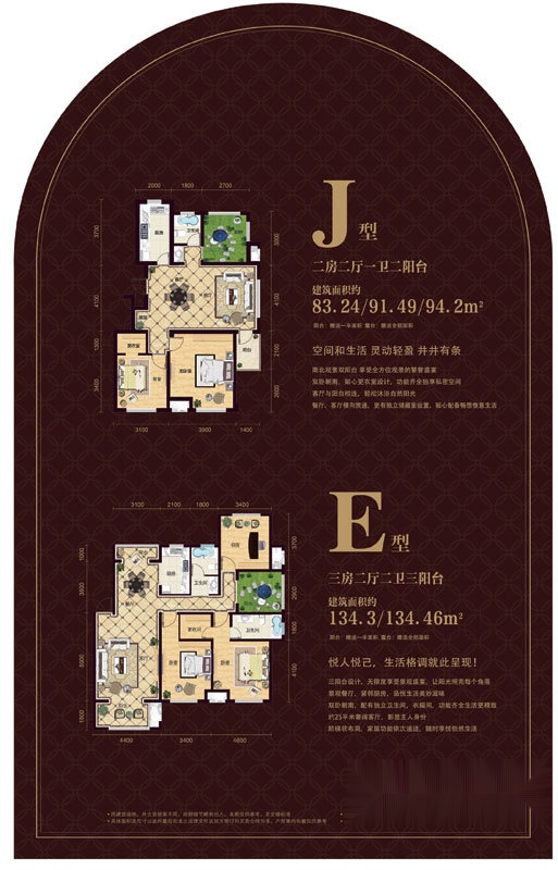 2室2厅1卫-户型J、E户型