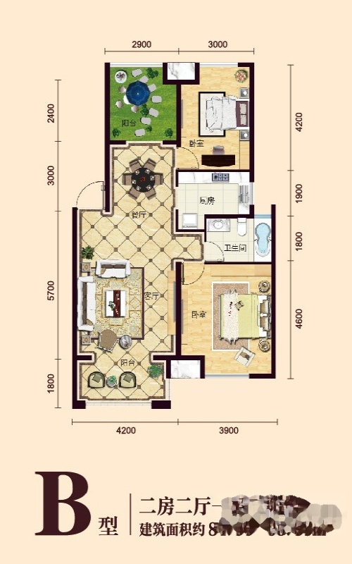 2室2厅1卫-B户型