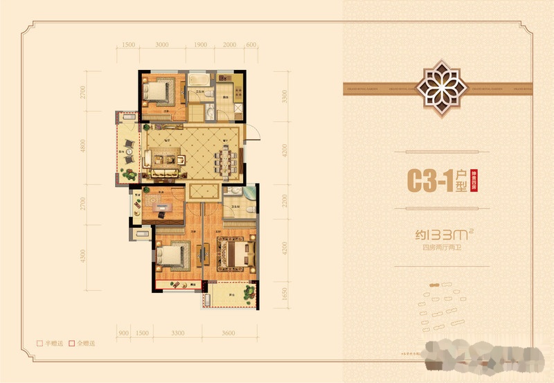 4室2厅2卫-C3-1户型四房两厅两卫133㎡