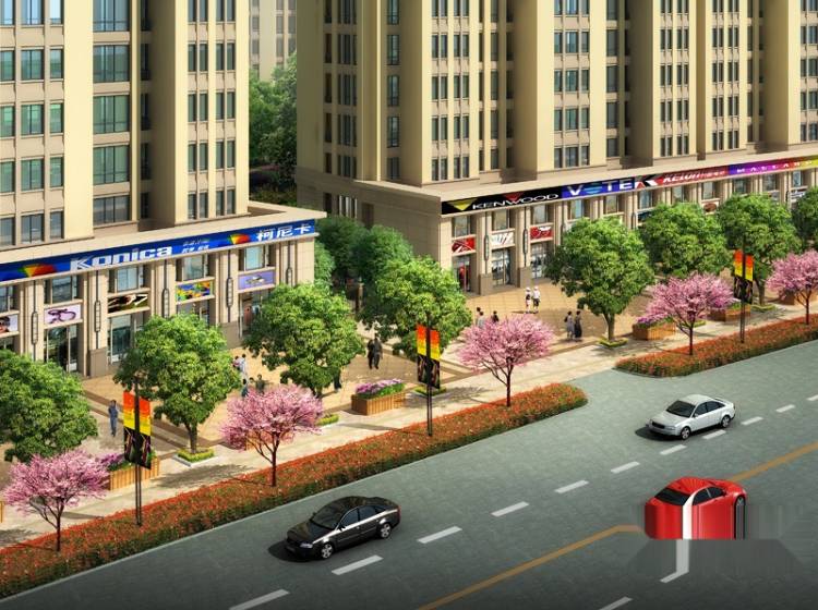 小区内部配套:9500平方米的沿街商业, 1380平方米的净菜市场,1800平方米的中心会所