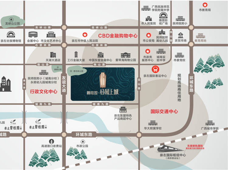 碧桂园公园上城,是碧桂园集团落子崇左市的第三个高品质项目,社区位于崇左城南新区核心地段,占地面积240亩,定位崇左城市封面,国际化都荟大城。