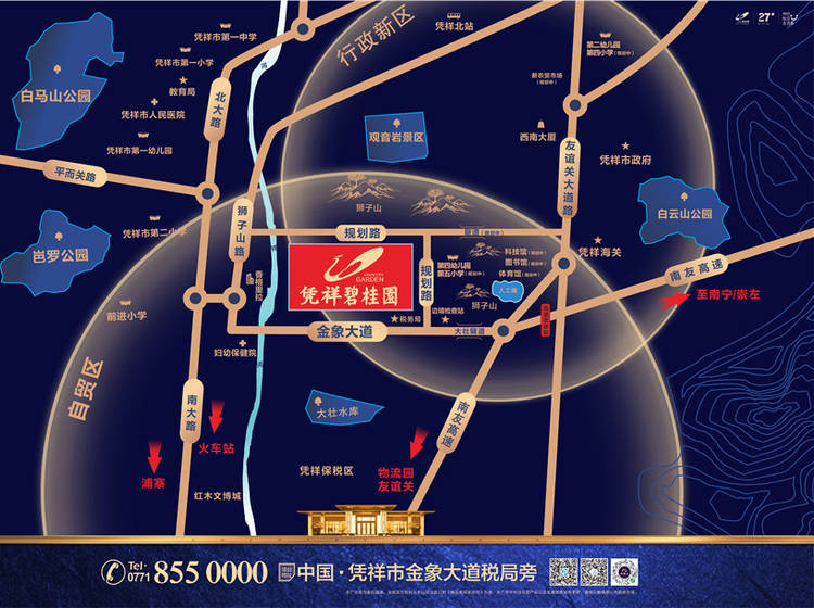 碧桂园集团择址于凭祥金象大道中轴,国税局旁地块,以国际先进建筑理念,新亚洲系TOP级产品、高级智慧人居科技,打造比肩国际的城市智慧社区—凭祥碧桂园。项目占地60.61亩,规划容积率 3.0,总建筑面积约15.33万㎡ 。凭祥碧桂园项目坐拥凭祥城脉正席,眺瞰国门自贸区蝶变,定制式管家物业服务,专属服务凭祥精英人士,臻稀山景高拓洋房,凭祥城市精英必争高价值洋房,打造凭祥首席国门地标豪宅。