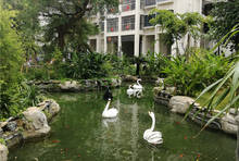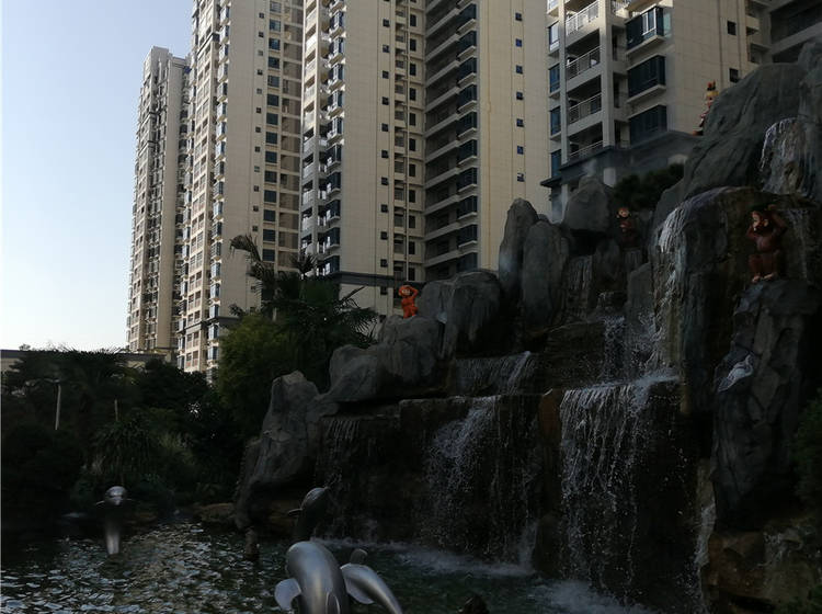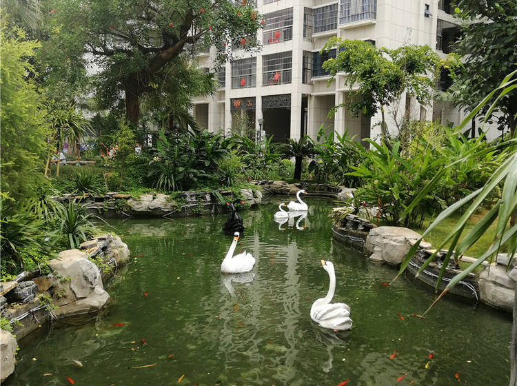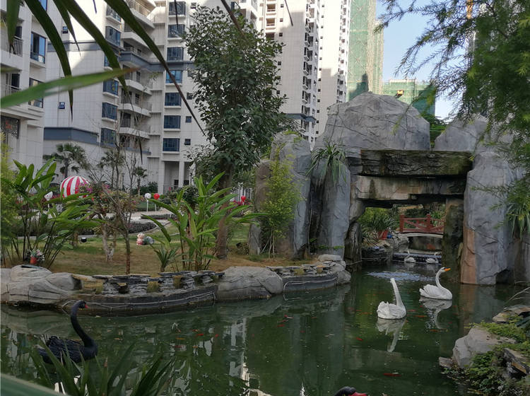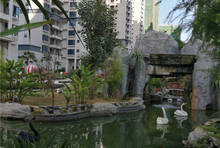 生态景观园林,地下泉水水系、假山瀑布、智能安防