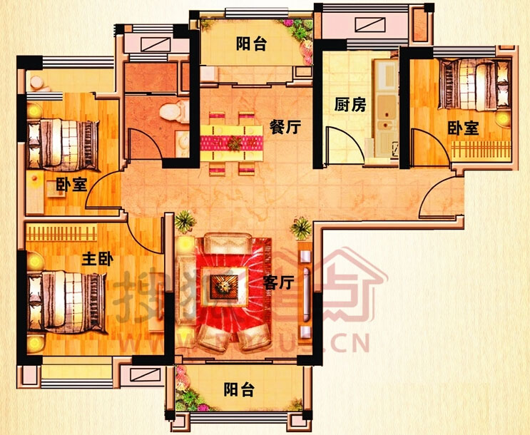3室2厅1卫-J192B