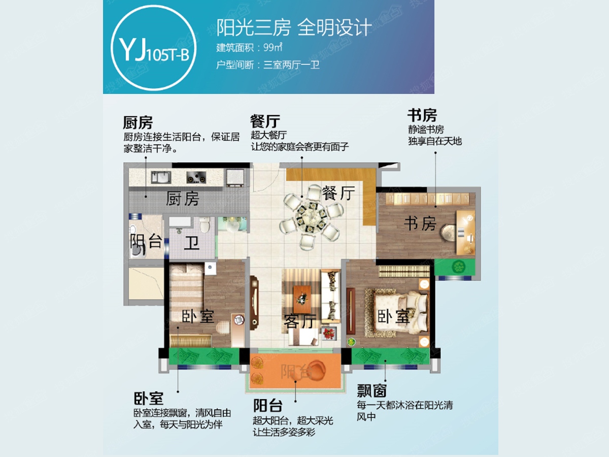 3室2厅1卫-YJ105T-B