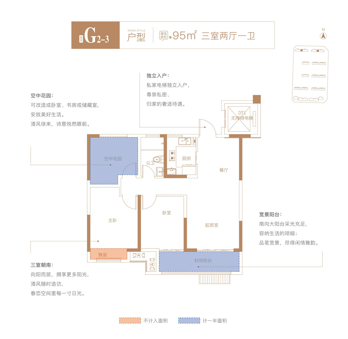 3室2厅1卫-时代云著G2-3-95㎡户型