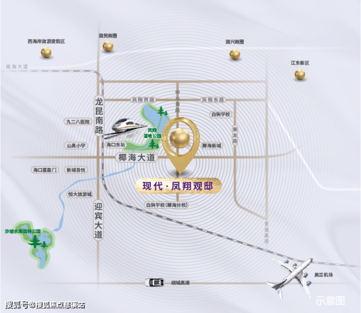 项目地处椰海大道,周边路网密集,椰海大道连通迎宾大道、绕城高速、海口联络线等城市主干道组成井”字立体交通网,快速通达海口国贸、国兴、西海岸及江东新区等各大片区。无缝接驳环岛高铁东站、环岛高速、美兰国际机场三大交通枢纽,岛内岛外自由畅行