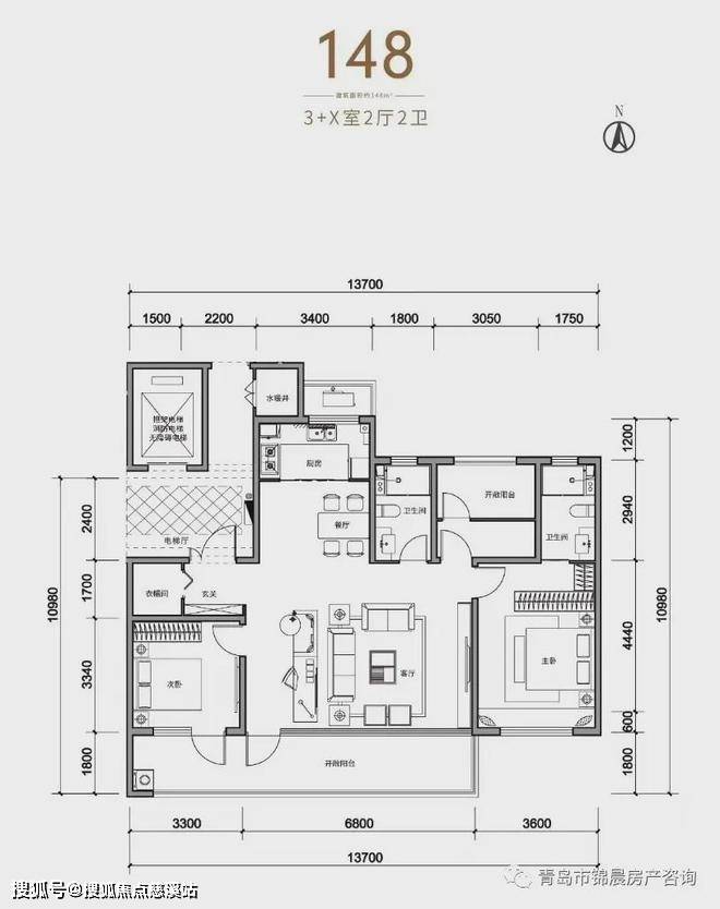 148平的户型还可以,与目前市场上主流的户型差不多,北侧的房间和阳台通过大尺度的偷面积,改造而成。如果要做成4室,那么客厅的尺寸就要大幅压缩。