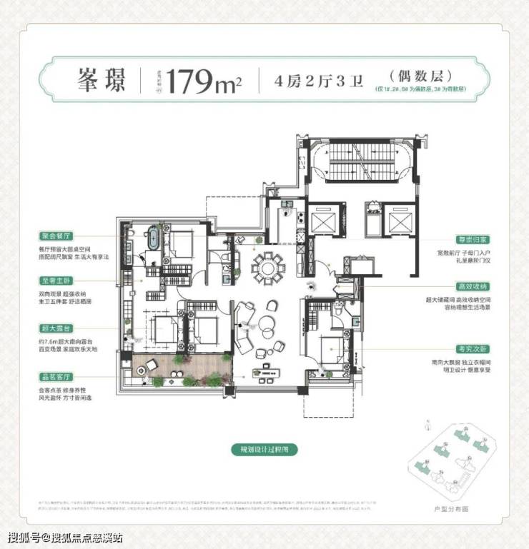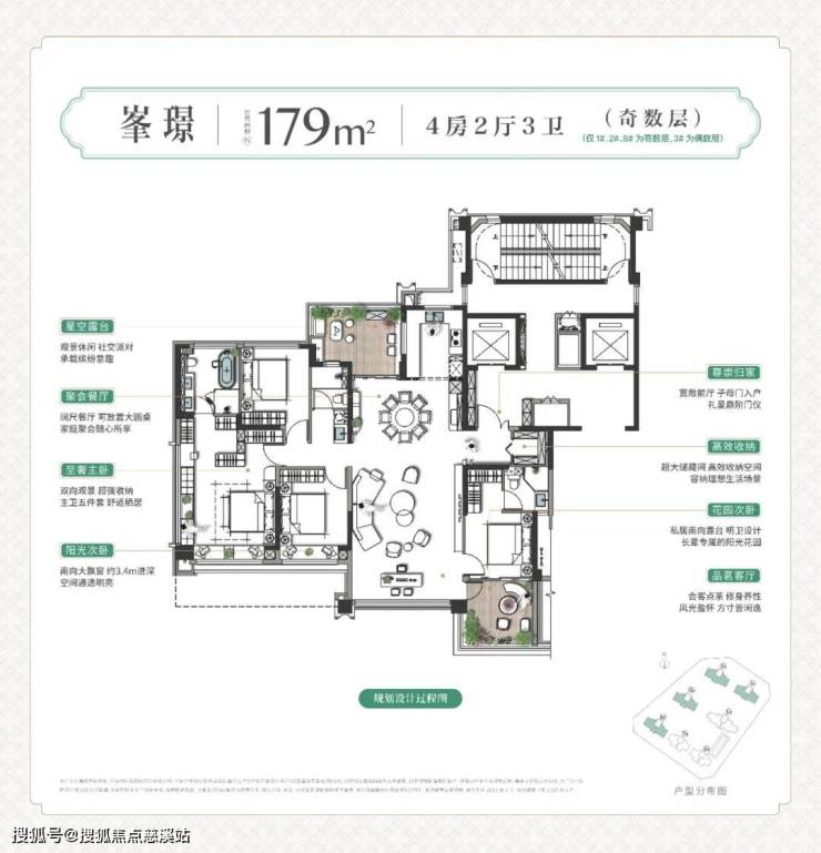 最后,户户奢享双露台,【偶数层】露台成为主卧私享,将酒店式奢享体验变为居家日常;【奇数层】露台与餐厅相连,进一步扩大公区,休闲、会客、商务洽谈等需求皆可在同一空间实现,且互不干扰。