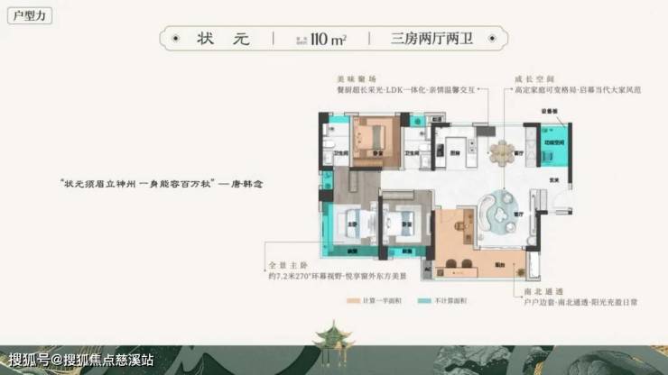 户型实际使用率突破100%,不计容面积超约28.91㎡,卓越空间感上,让生活更多场域共享;约6.9m客厅黄金面宽,可实现超60㎡大平层级LDK一体化家庭生活场;南北双阳台设计,一方晾晒一方阔景。